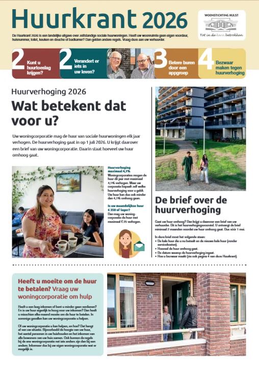 De Huurkrant 2026 is nu beschikbaar en biedt uitgebreide informatie over de huurverhoging per 1 juli 2026, inkomensafhankelijke huurverhoging en uw rechten als huurder. Daarnaast leest u over huurtoeslag, bezwaar maken tegen huurverhoging en praktische tips voor prettig wonen.