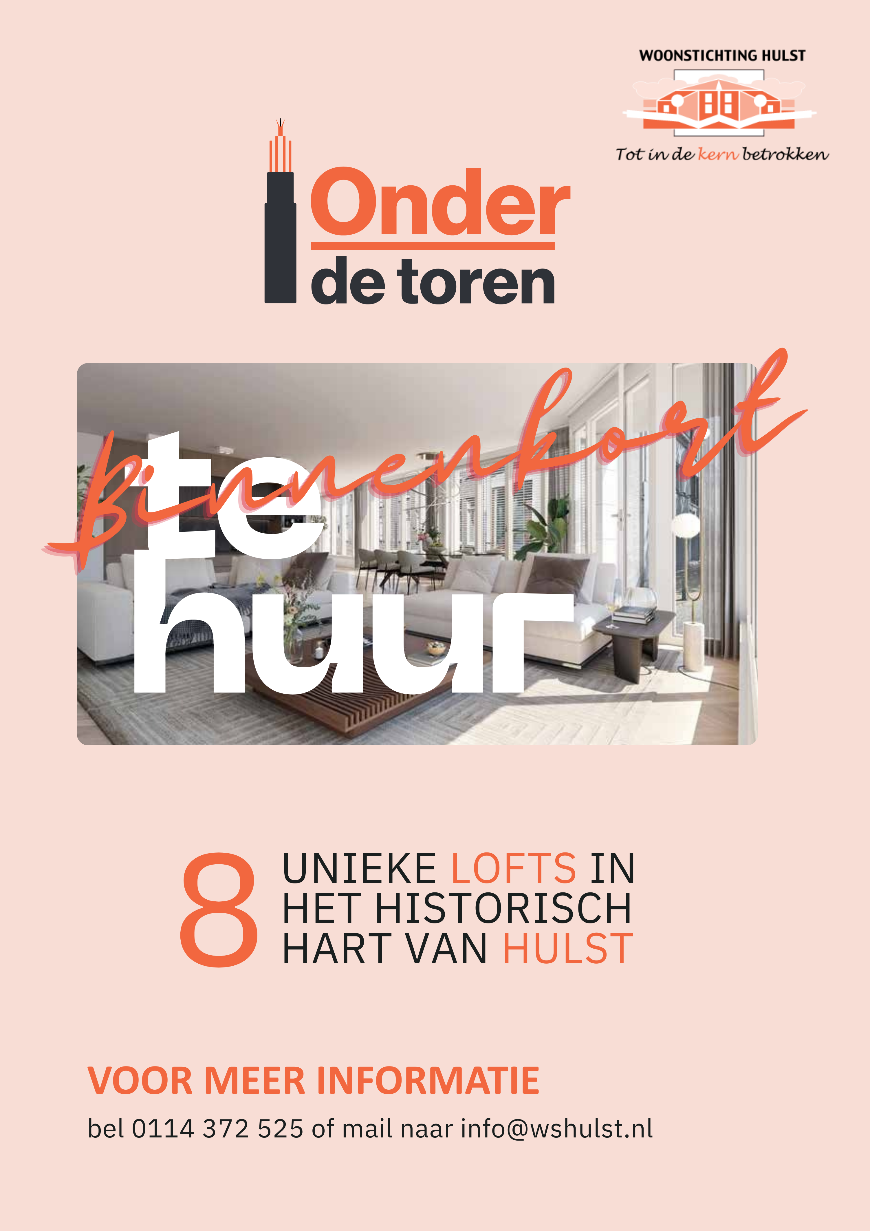 De panden in de plint van Onder de Toren zijn nu officieel in bezit van Woonstichting Hulst. Hier realiseren wij binnenkort 8 royale lofts, waarvan 5 met ondergrondse parkeergarage. De lofts zijn naar verwachting voor de zomervakantie gereed.